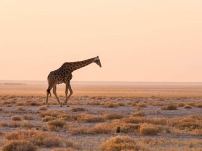Located in Northwestern Namibia, Etosha East is a protected sanctuary in the eastern part of the world-renowned Etosha National Park, regarded as one of the most accessible game reserves in Southern Africa. Etosha East boasts vast open plains scattered with semi-arid savannah grasslands dotted with watering holes and secluded bush camps. An impressive 5,000-square-kilometer Etosha salt pan makes up a large area of the eastern side of the park, and can even be seen from outer space. This remote area teems with abundant wildlife such as lions, elephants, black rhinos, and giraffes, as well as a variety of birdlife featuring flamingos, ostriches, eagles, hornbills, and owls.