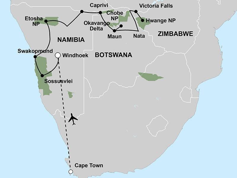 Spend 3 weeks exploring the highlights of South Africa, Namibia, Botswana, and Zimbabwe with us on our Northern Experience guided group tour, experiencing the wildlife, culture, and scenery only Africa can deliver. From witnessing the magnitude of Victoria Falls to marveling at Namibia’s dunes and appreciating the big game interaction, this tour combines all the comforts of hotel and lodge accommodation with an unforgettable safari experience.